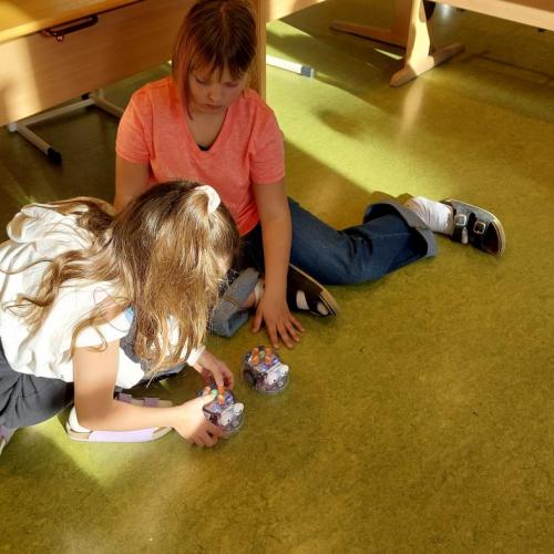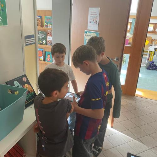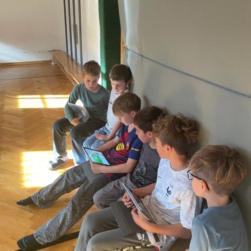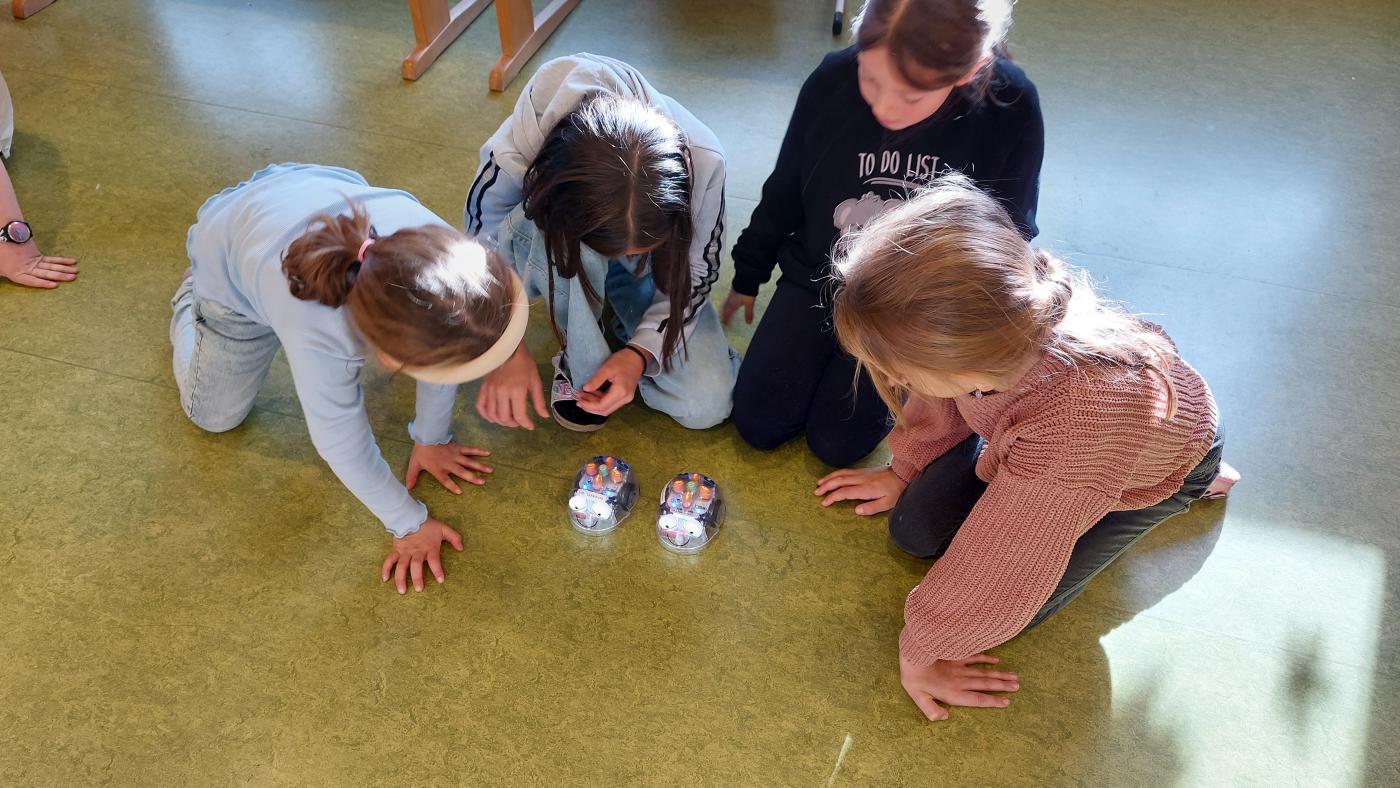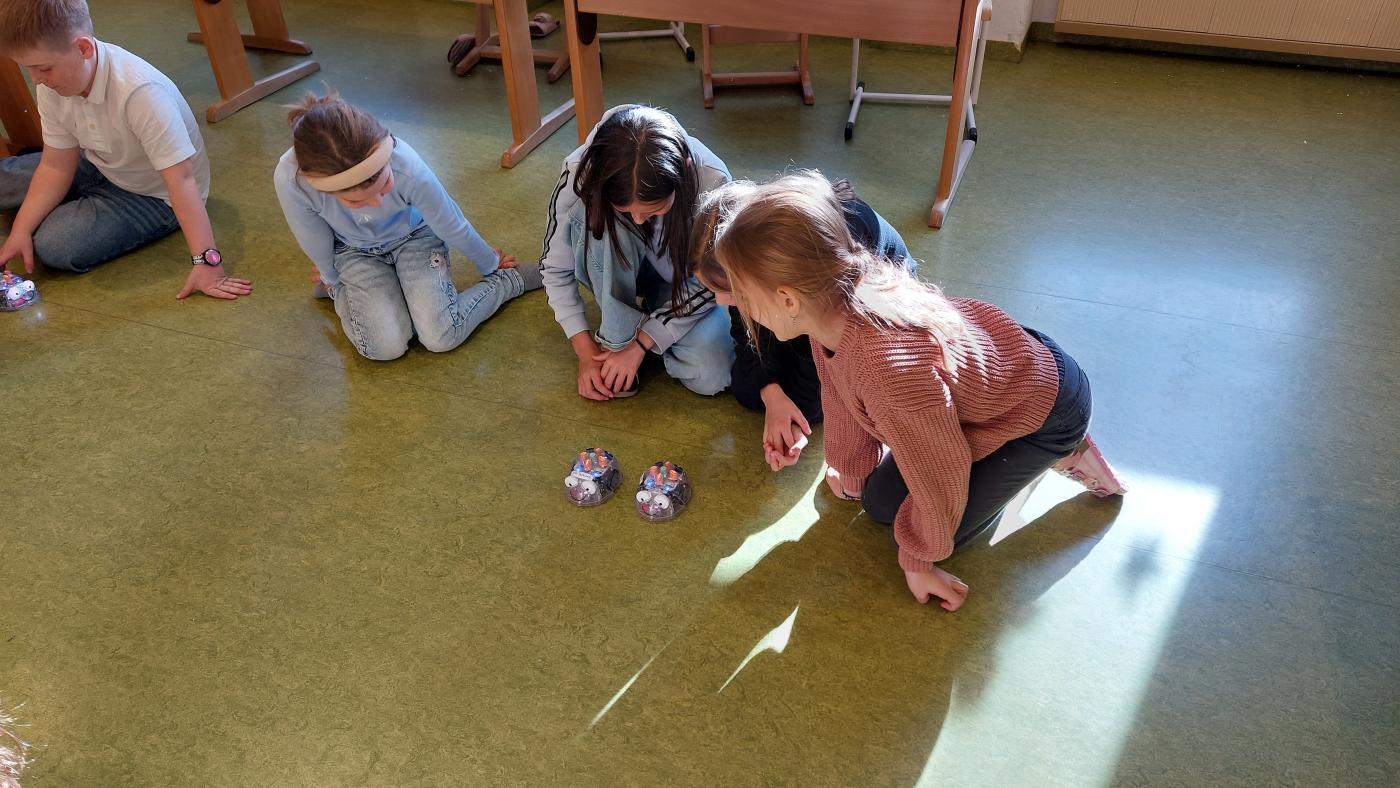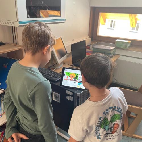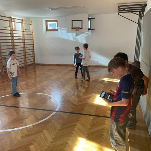 Dank der großzügigen Unterstützung des MINT-Vereins Tirol (MINT-Koordination Tirol) konnte die Robotik-Gruppe, die von Lehrer Egon geleitet wurde, an diesem Tag mit sechs LEGO® SPIKE™-Kästen arbeiten und ihren selbstgebauten Robotern „Leben einprogrammieren“.