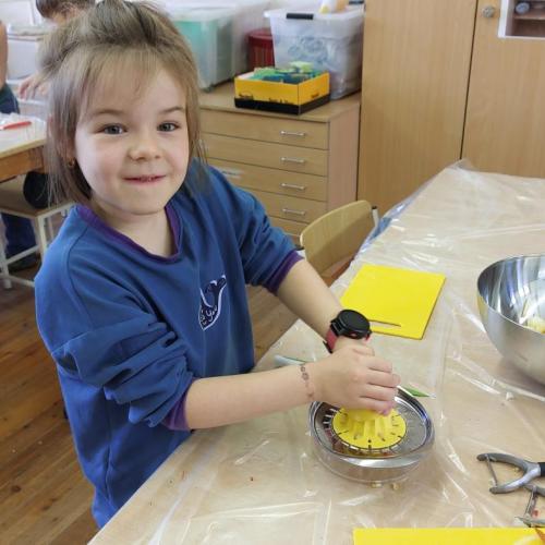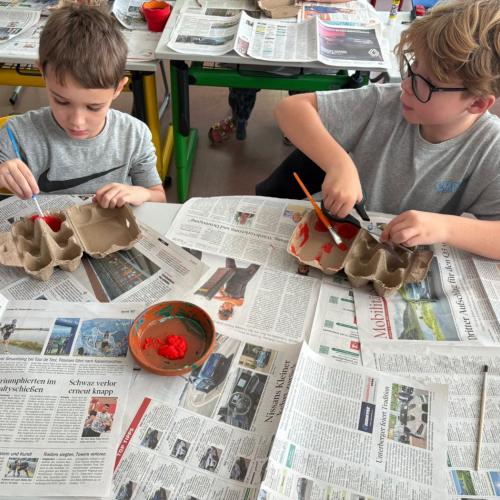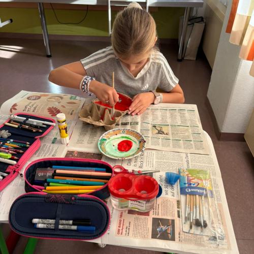 Dass Müll auch kreativ genutzt werden kann, bewiesen die Kinder im Workshop von Lehrerin Eva, bei dem aus vermeintlichen Abfällen kleine Kunstwerke entstanden.