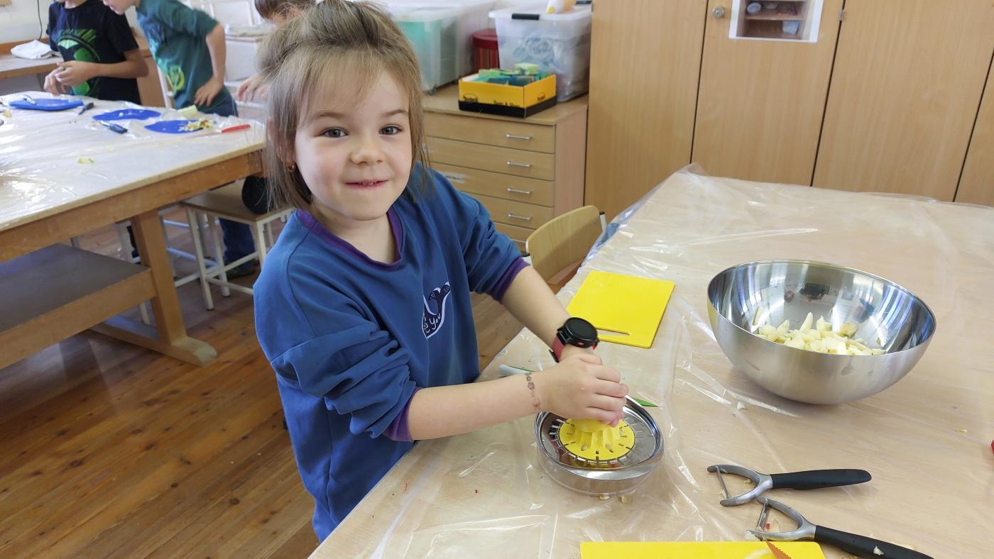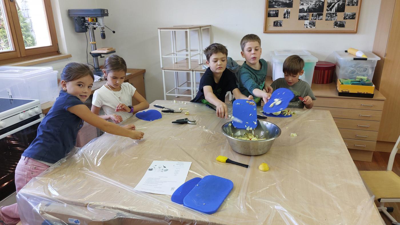 Bei Lehrerin Lena durften die Kinder ihre Kochkünste erweitern und einen zauberhaften Apfelstrudel herstellen und dann auch genüsslich verspeisen.