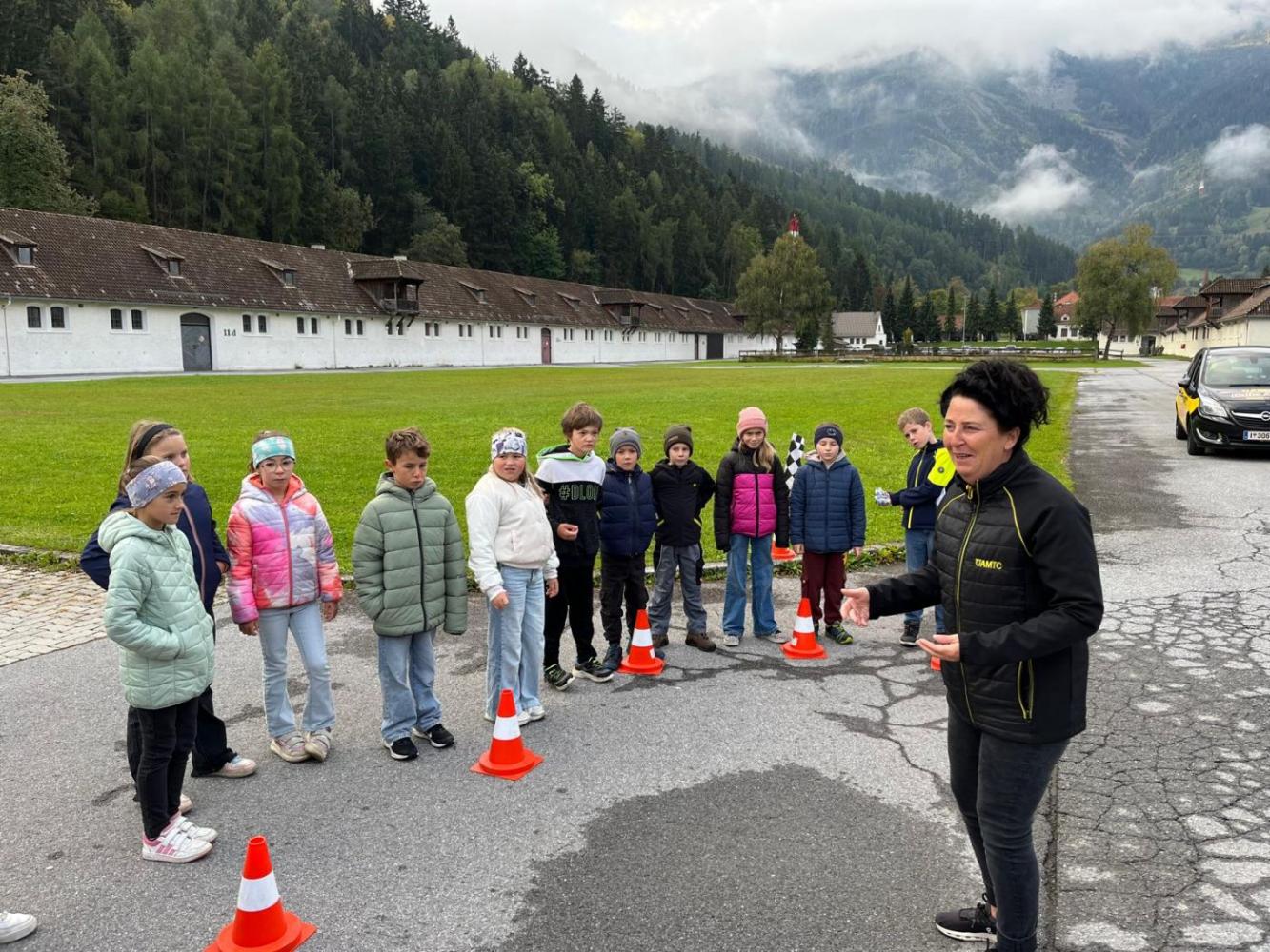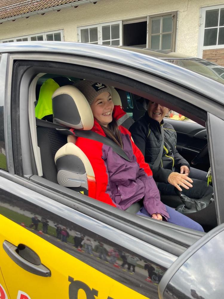 Heute wurde bei „Hallo Auto“ die Formel „Reaktionsweg + Bremsweg = Anhalteweg“ mit den Kindern gemeinsam durch Selbsterfahrung erarbeitet. Die Kinder sehen und spüren, dass selbst eine Notbremsung das Auto nicht sofort zum Stillstand bringt. Eine lebenswichtige Erkenntnis bei der selbstständigen Bewältigung des Schulwegs.